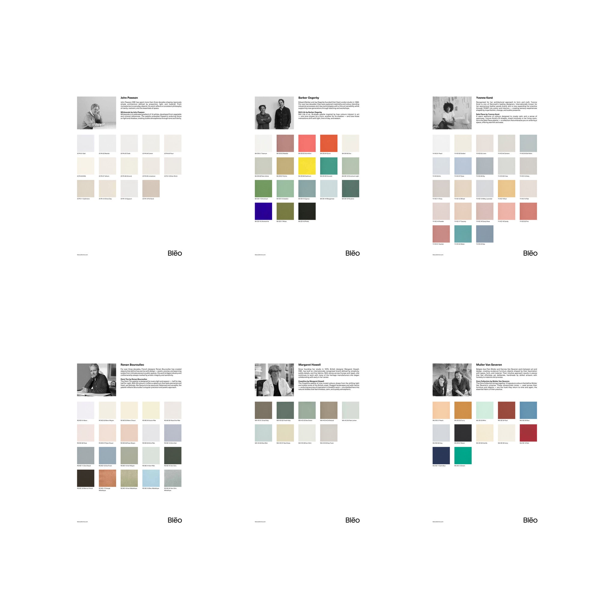 A complete overview of Blēo’s colour world, bringing together nearly 380 shades from the Essential Paint Collection across all creative collaborations.