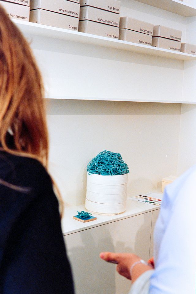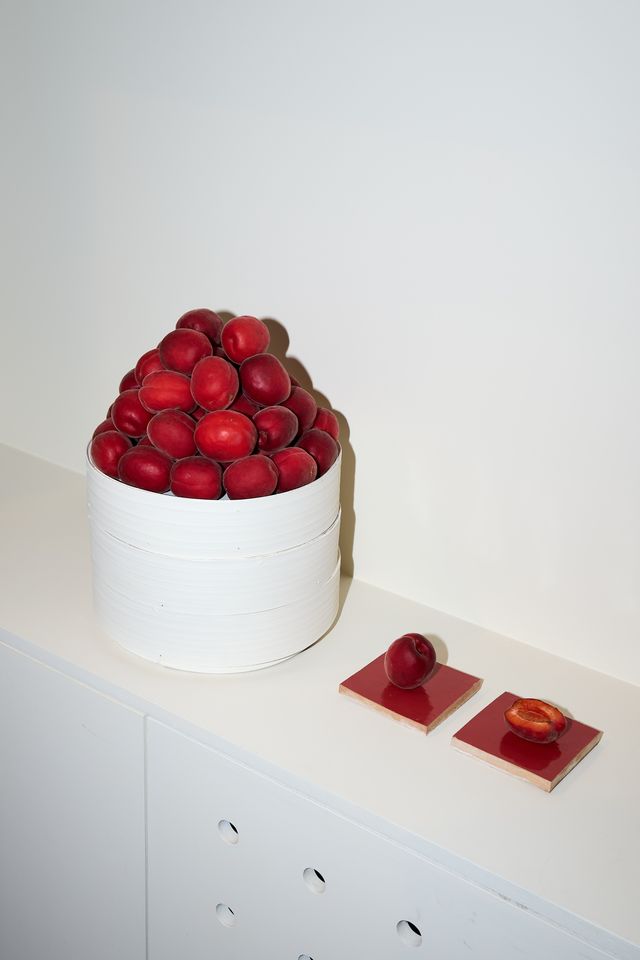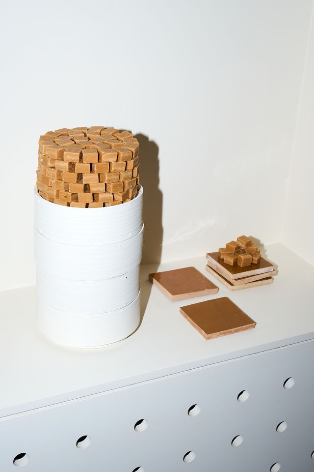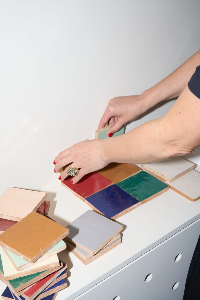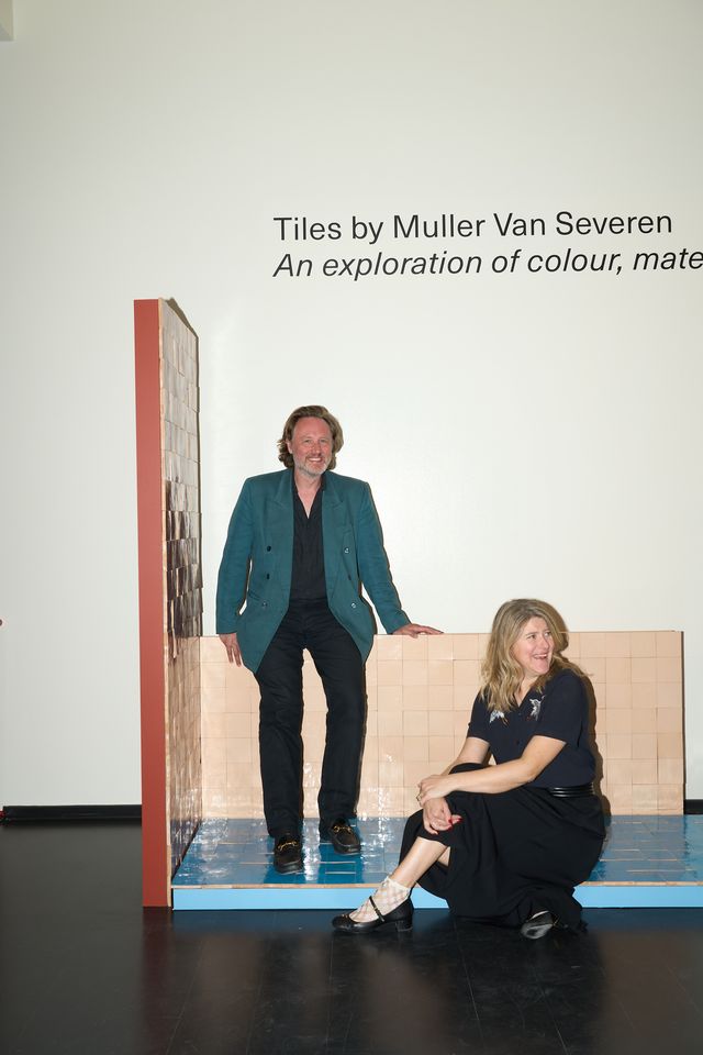 Tiles by Muller Van Severen consists of 12 handmade tiles developed with Fien Muller and Hannes Van Severen, and explores colour as a tactile and emotional surface. Displayed in a series of composed wall pieces throughout our studio, the tiles invited visitors to engage with their rich tones and subtly irregular forms up close.