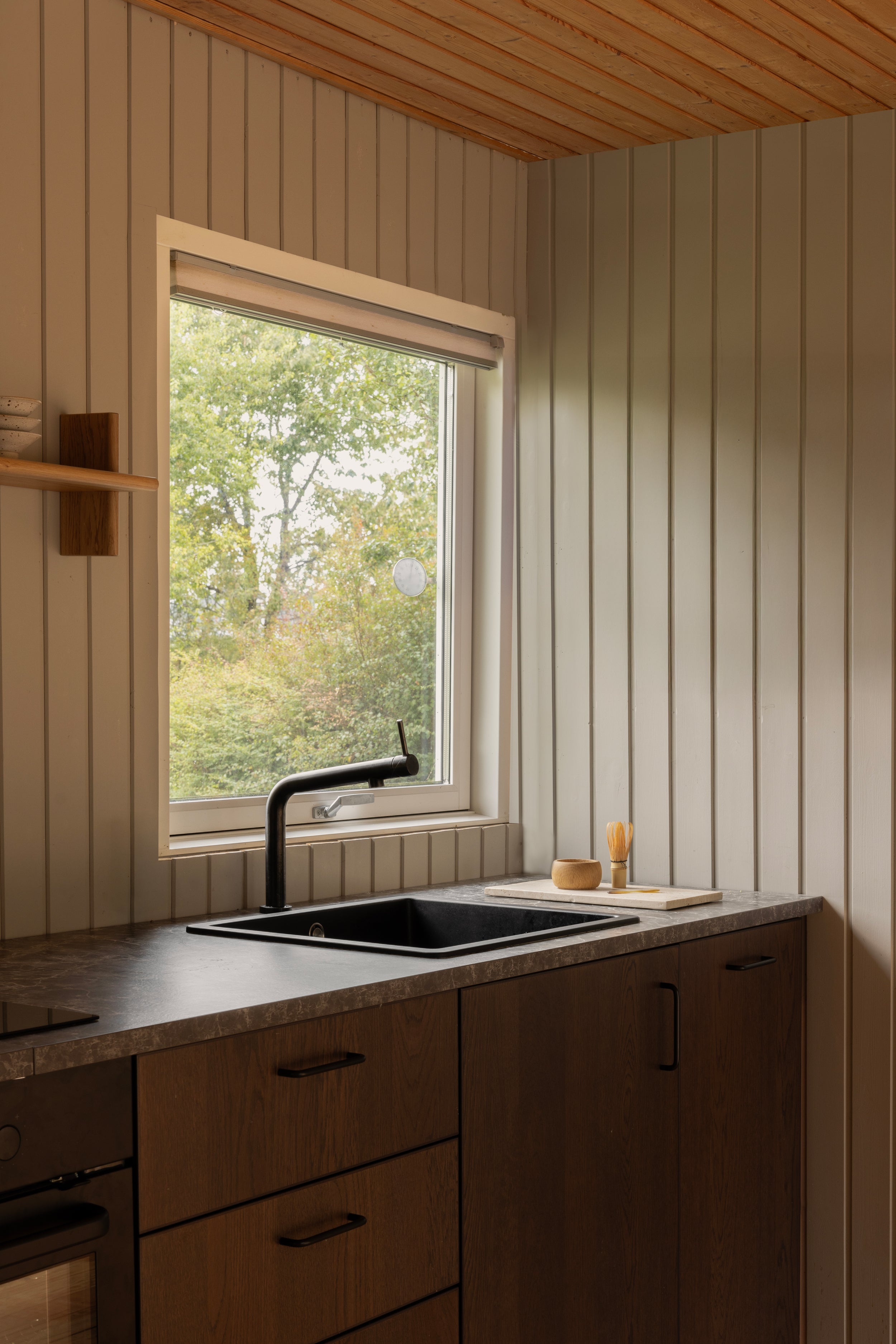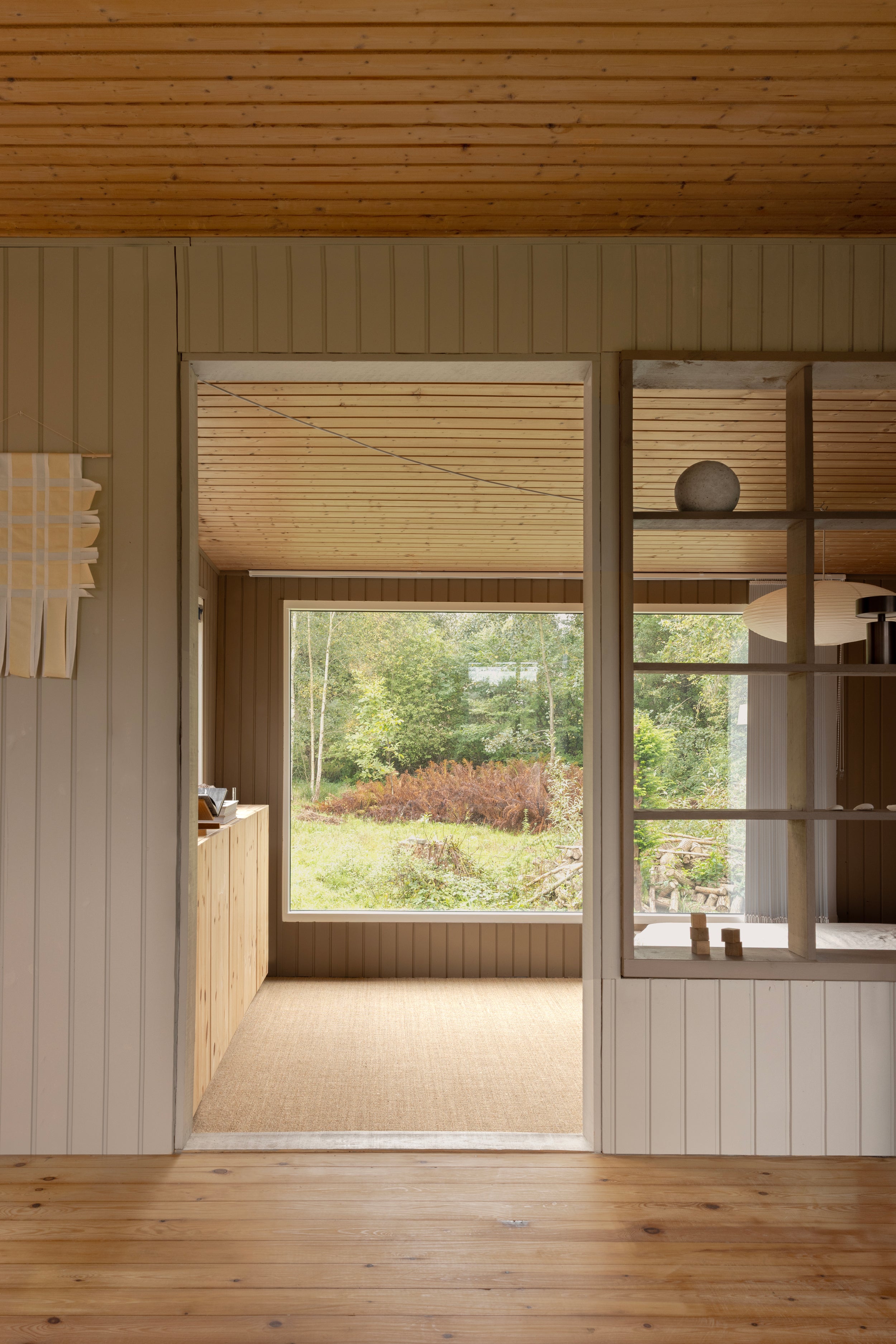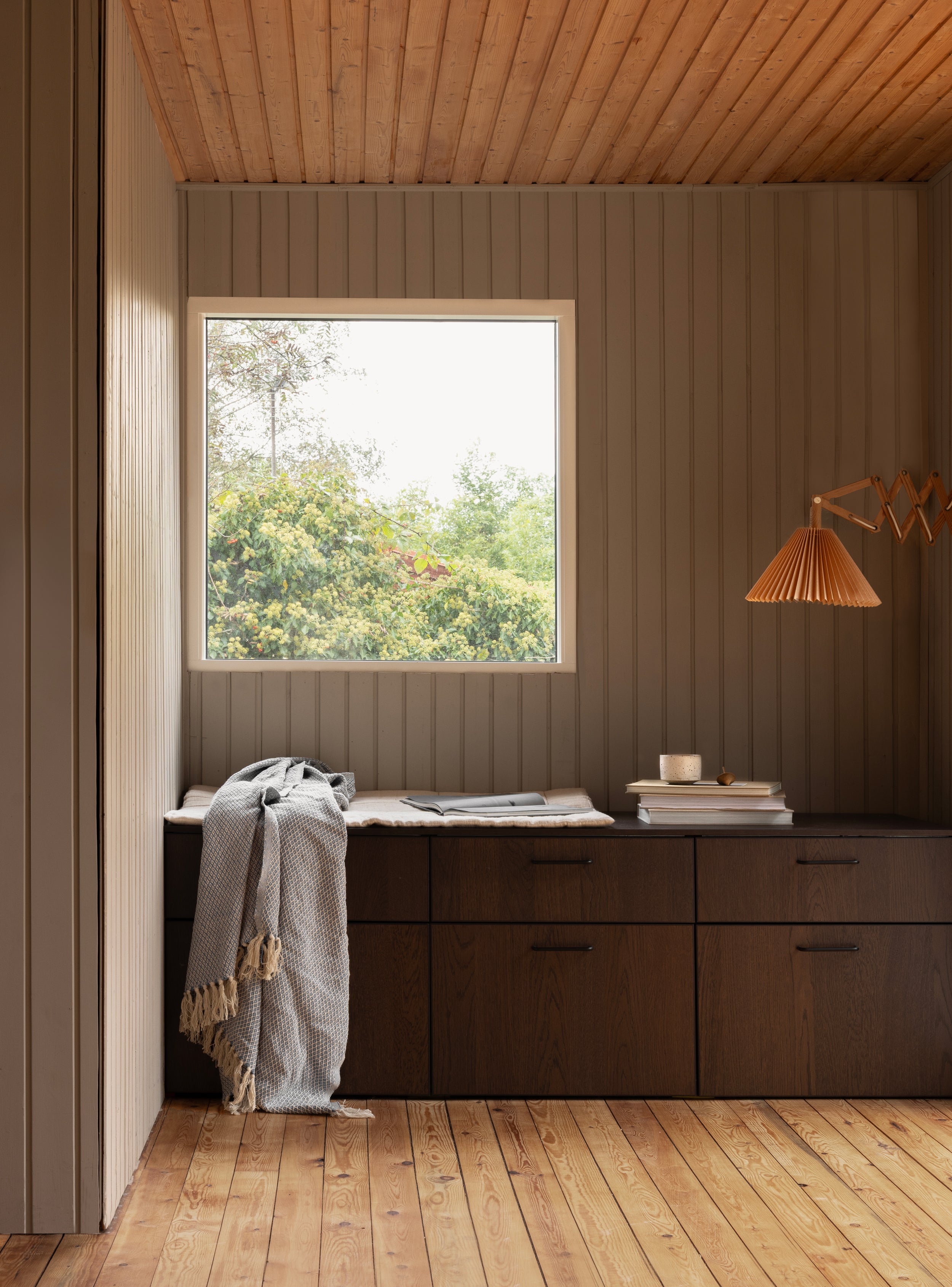 Sandie, who works with Norm Architects and through her own practice, grew up in the area and recently returned with Christoffer and their two daughters. What began as a parental leave project soon evolved into a careful restoration — a love letter to both place and process. The couple sought to preserve the house’s original spirit while opening it toward the landscape. Large windows invite nature in, while wood, stone, and soft textiles create a seamless flow between indoors and out.