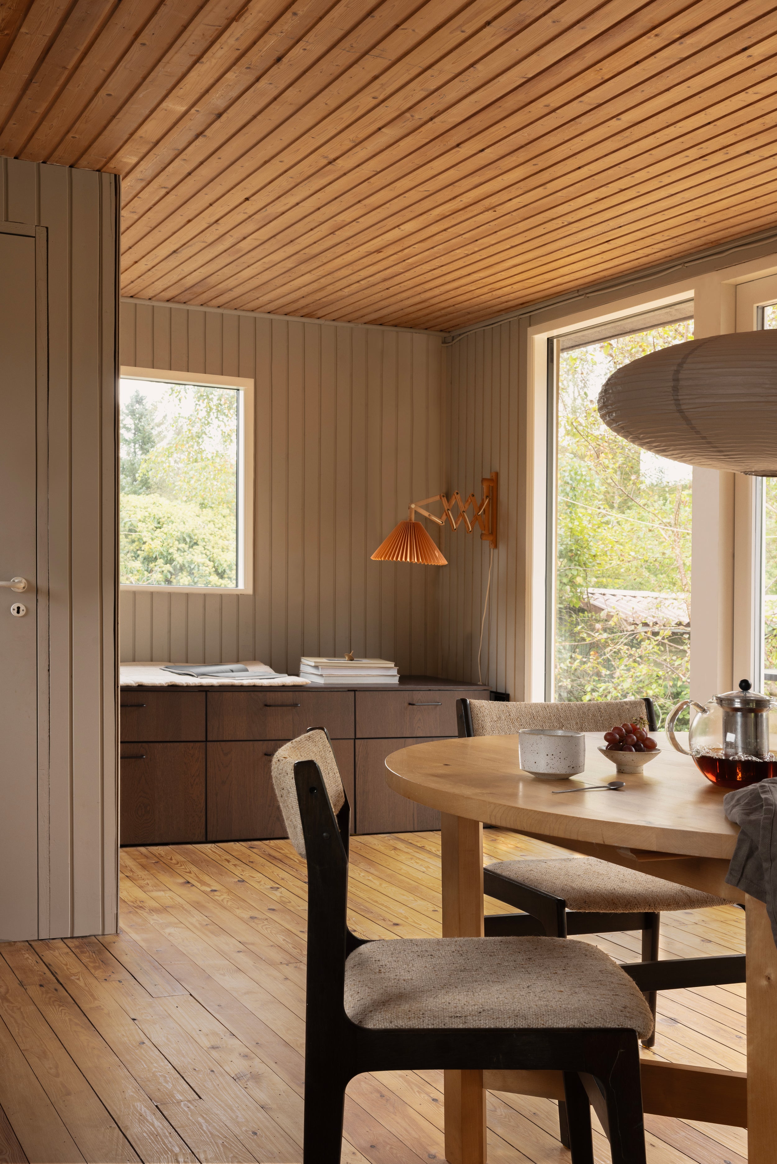 Amid the quiet landscape of Kisserup Strand on Tuse Næs lies the summer house of photographer Sandie Lykke Nolsøe and her husband, pilot Christoffer Nolsøe. The modest structure sits on a wild and captivating plot surrounded by old trees, ferns, and the gentle traces of deer. Here, stillness feels alive — punctuated only by birdsong and the distant sound of waves.