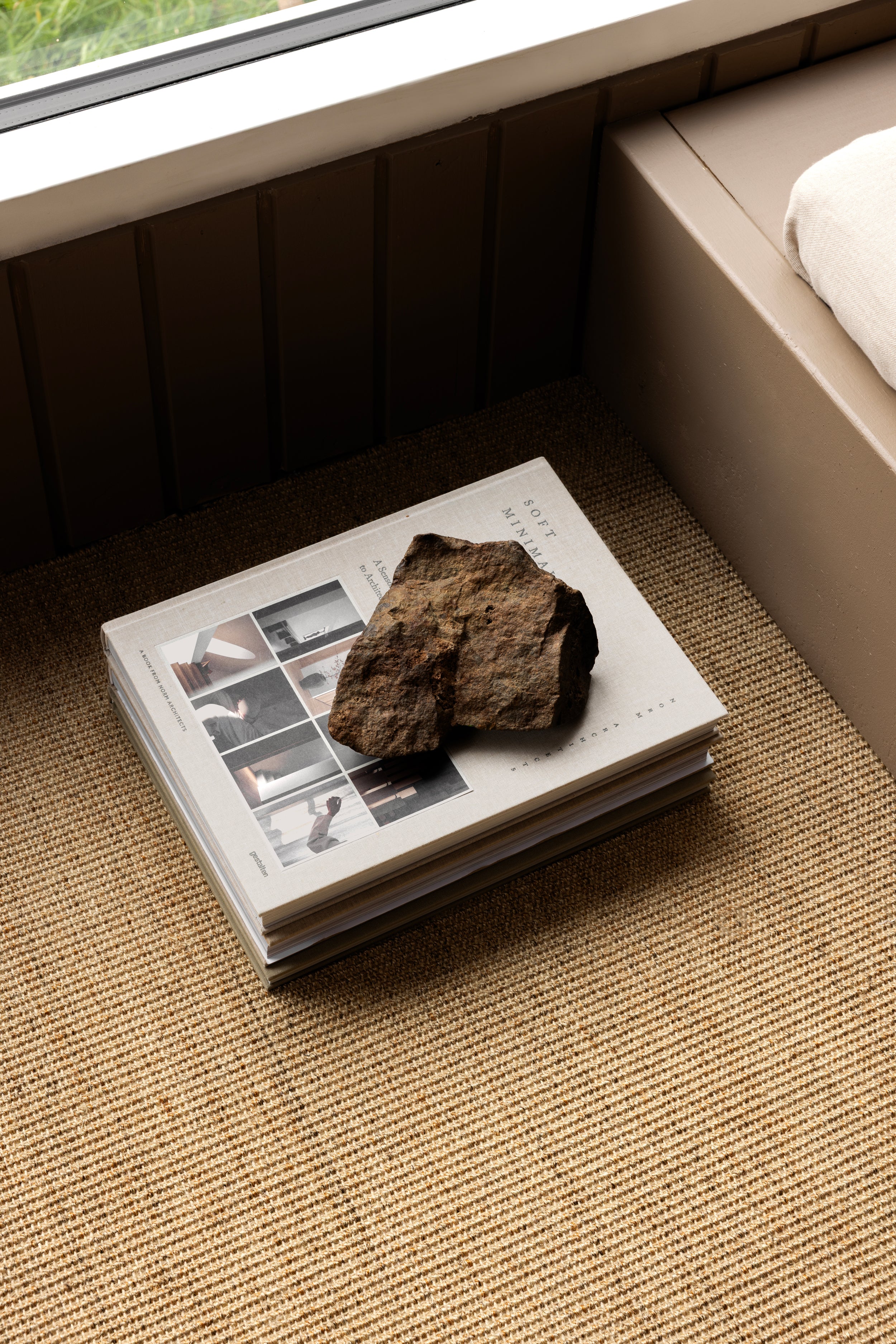 Colour plays a quiet but defining role. The walls are painted in NO AR 14 Limestone and NO AR 12 Rammed Earth — calm, grounded tones that extend the natural palette into the home and root it gently in its surroundings.