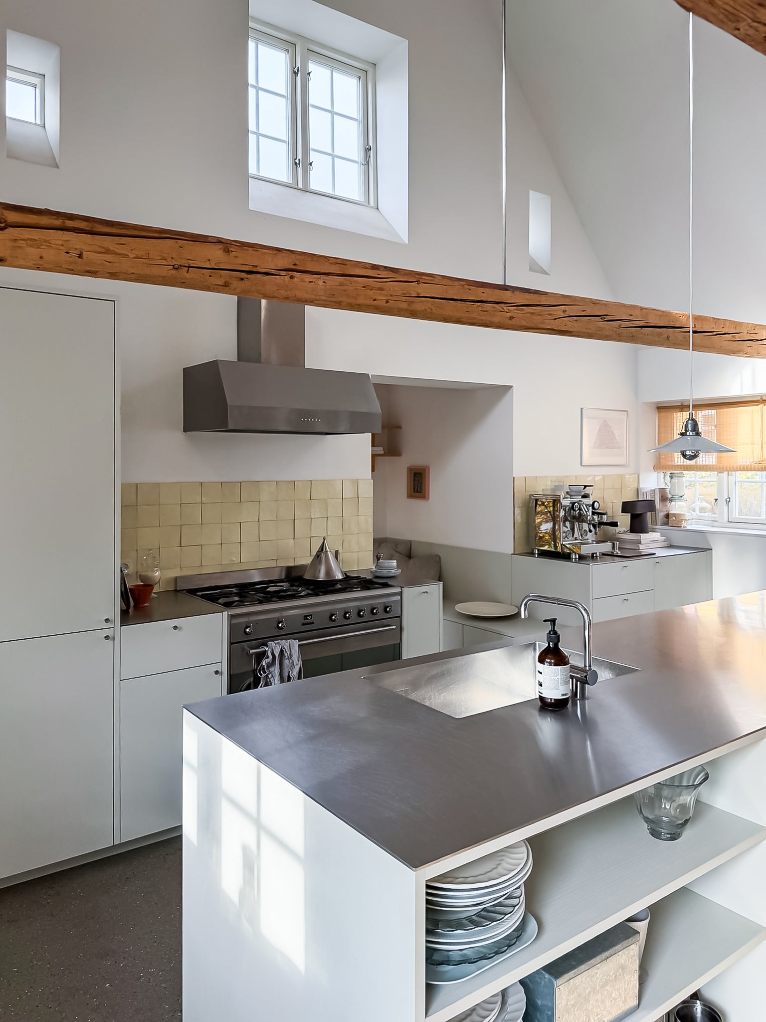 The home belongs to Anne Gjesing, founder and owner of TOKO Objects, a design store in Svendborg, Denmark, known for its carefully selected mix of everyday objects, handmade pieces and international design. Anne also works as a freelance interior stylist, and the same thoughtful approach to design, materials and function that characterises her store is reflected in the atmosphere of her kitchen. She lives here with her husband and their four sons.