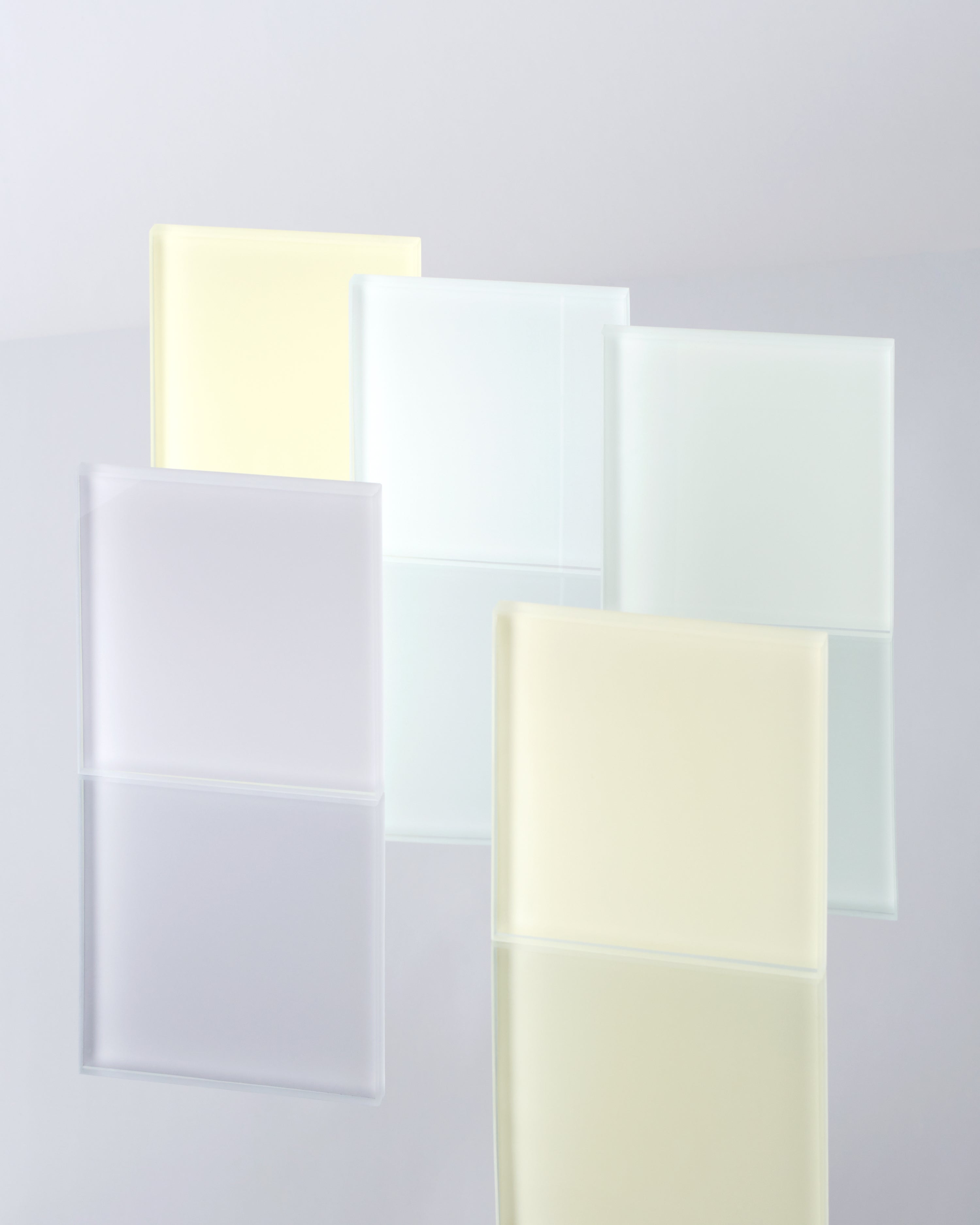 Glass was a natural choice. It holds depth, reflection, and clarity in a way few materials can. By applying colour behind the thickness of the glass, the light has a journey: it enters the material, hits the pigment, and returns filtered and transformed. You see colour through the material, not painted on top, which is an effect I always pursue in my work. Glass also sits beautifully between engineered precision and a sense of craft. It can be extremely controlled, yet it keeps traces of unpredictability that bring softness and life.
