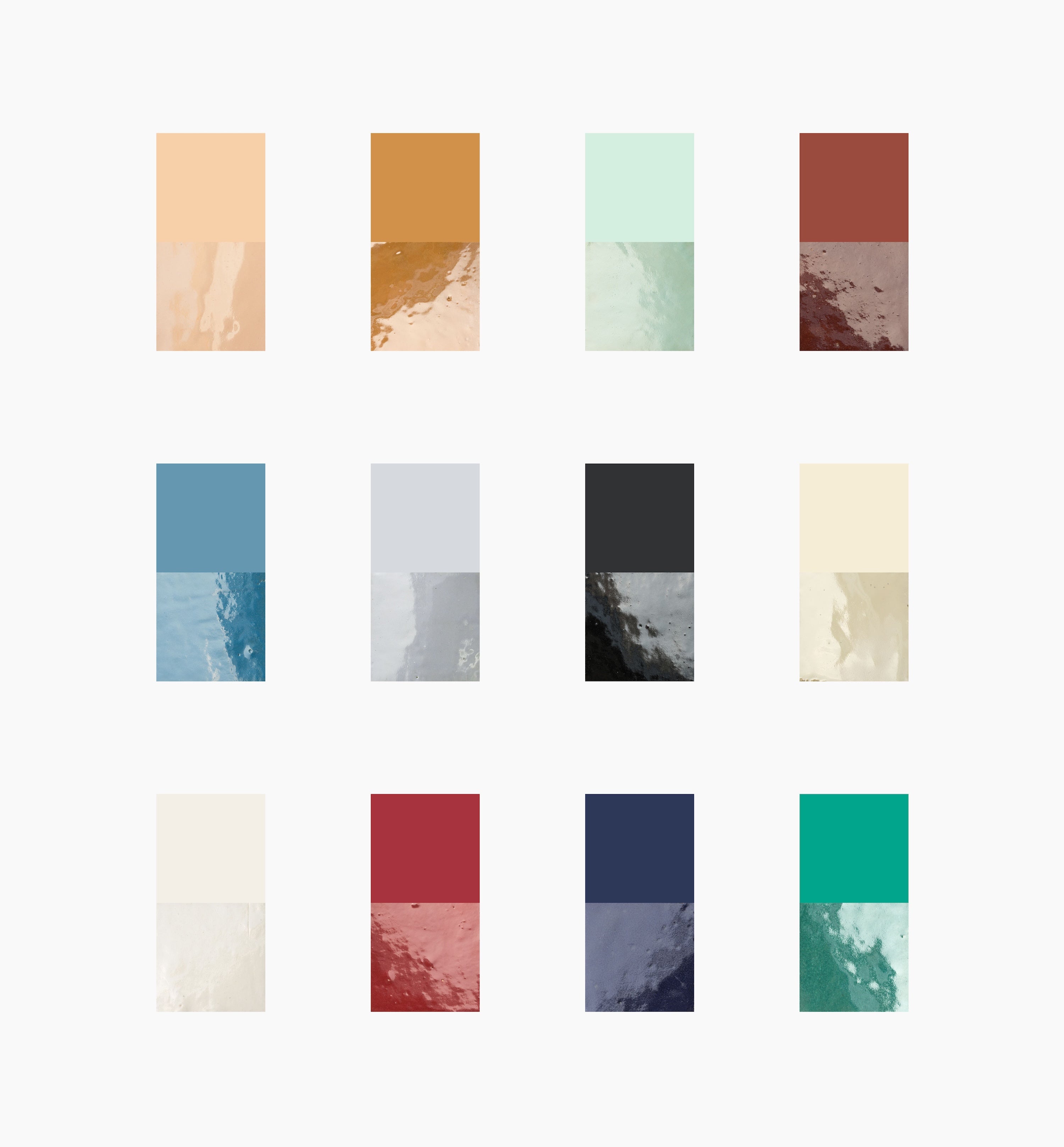 The colours are intentionally mirrored across both collections to offer clarity and ease — making it simple to coordinate tones across spaces. While not identical, the colours are directly inspired by and interpreted through each material. Due to the nature of glazed tiles and the use of mineral pigments, a perfect one-to-one match isn't possible — but the palettes have been developed side by side to work beautifully together. Their true strength lies in their flexibility: the palette encourages mixing, matching, layering. Create subtle tonal rooms, or bold compositions with unexpected contrasts. The collection is as intuitive as it is precise — offering tools for expressive interiors that feel both cohesive and individual.