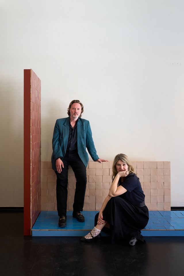 Fien Muller and Hannes Van Severen bring their sculptural sensibility and deep love of colour to their new tile collection. In this Q&A, they share what draws them to high-gloss surfaces, how colour comes alive through imperfection — and how they imagine the tiles being used.