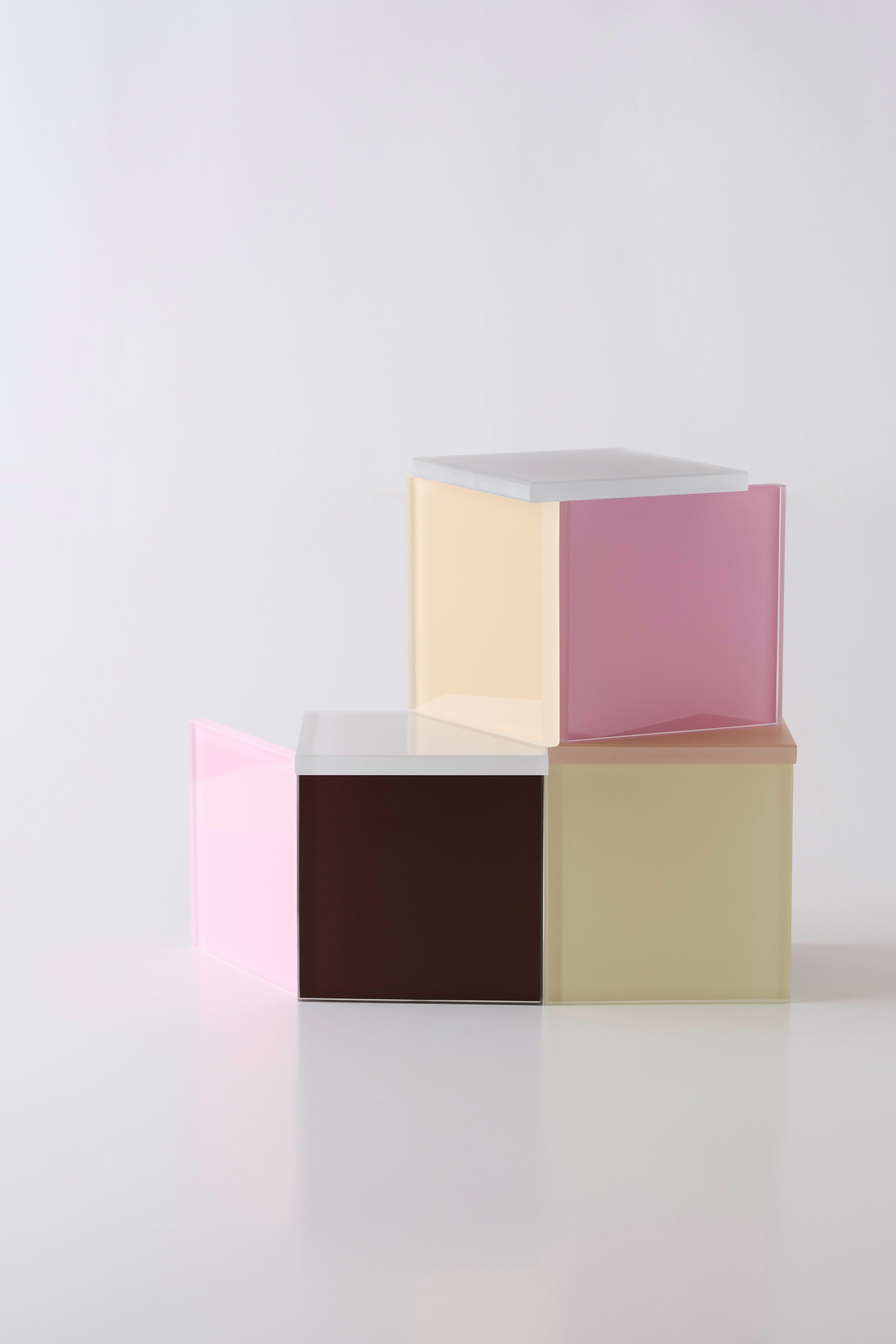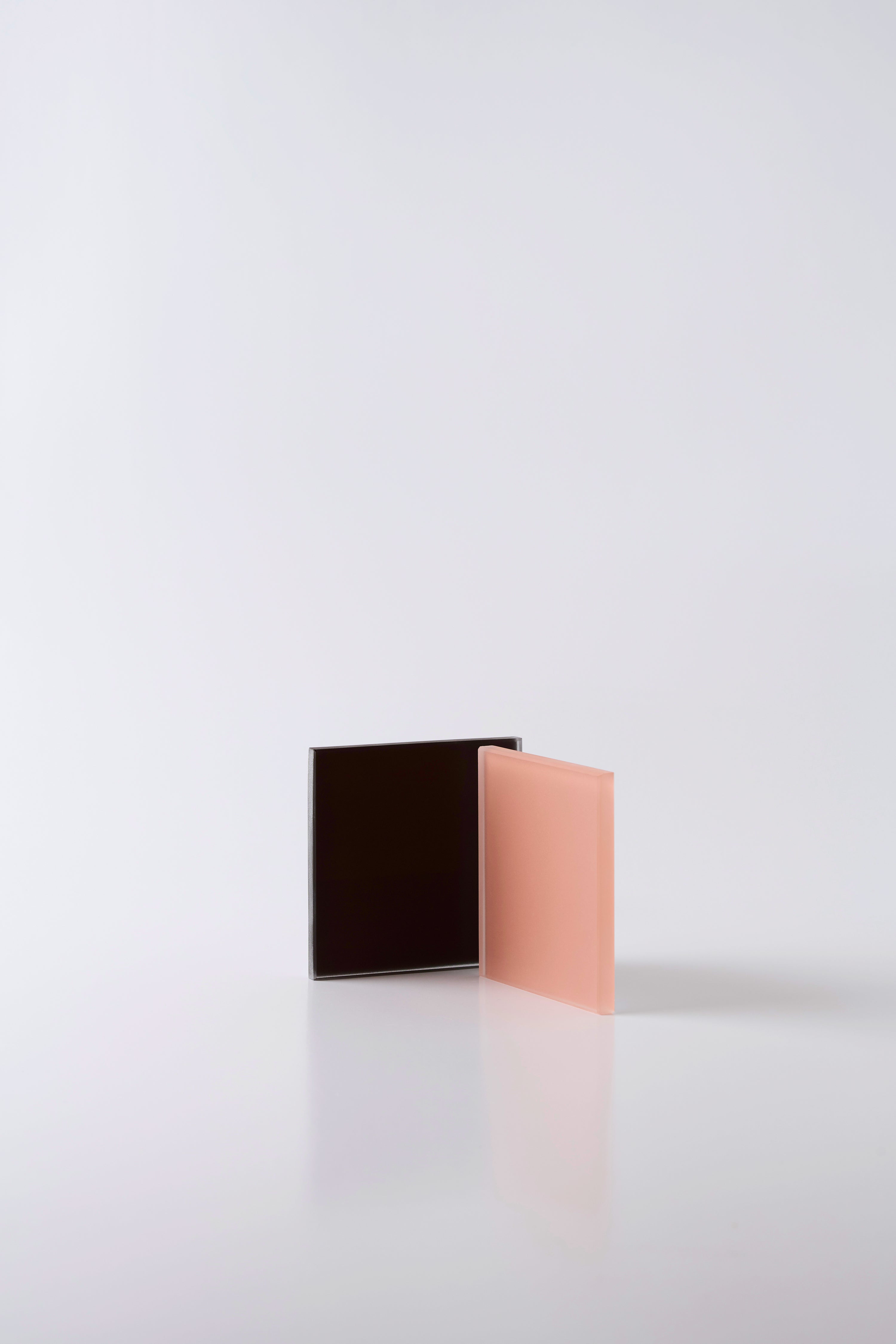 Tiles by Sabine Marcelis are precision-made glass tiles defined by light, tone, and material clarity. Each tile is cut to exact tolerance for a 2 mm grout line — for example, a 10 cm tile measures 9.8 cm. The colour is applied to the reverse of the glass in a uniform layer, ensuring consistency across batches while preserving the material’s luminous depth.