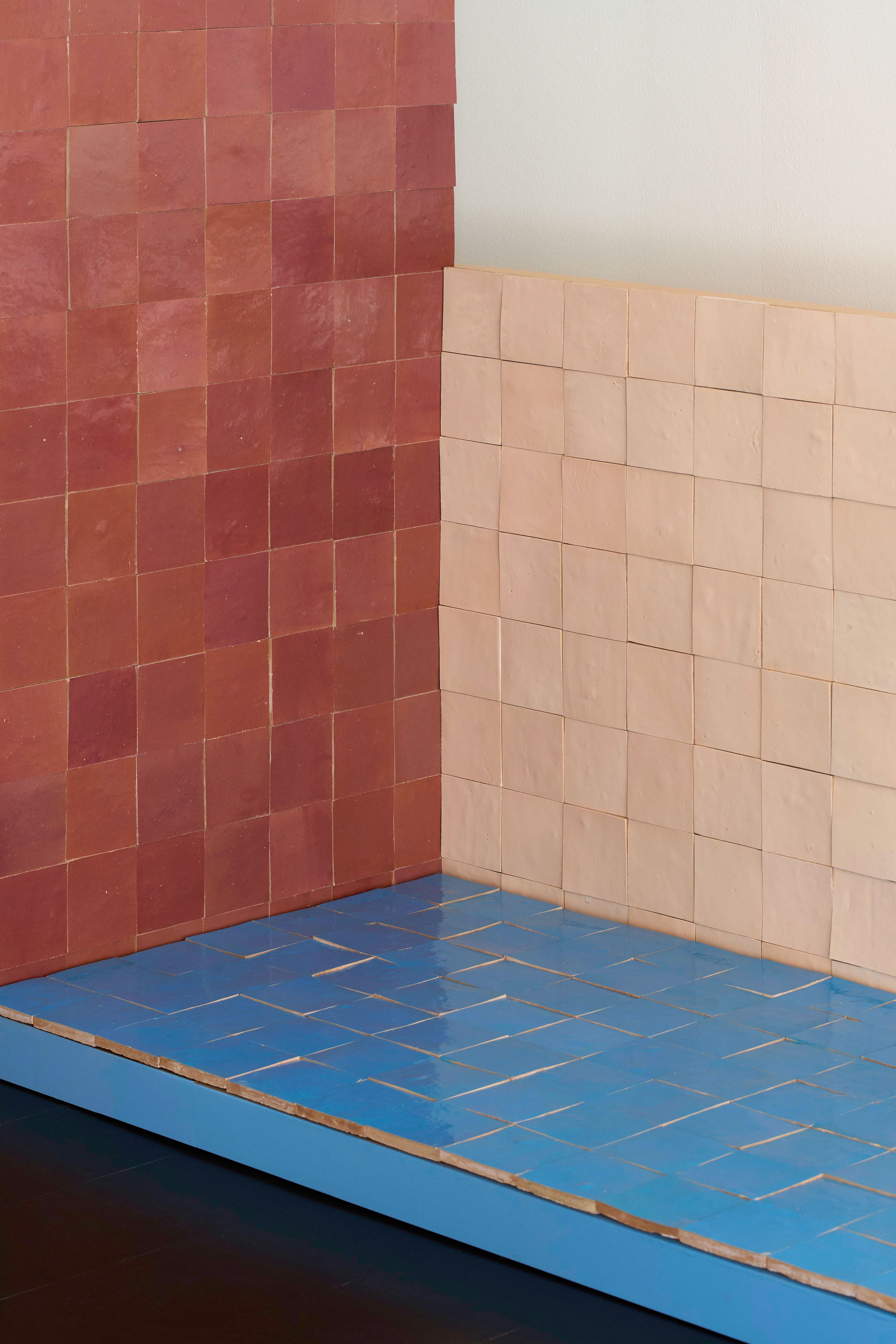 A collaboration between Blēo and Belgian design duo Muller Van Severen, this tile collection brings together traditional Moroccan zellige craftsmanship with a bold, contemporary colour sensibility. Each of the 12 tiles is handmade in Fez using centuries-old techniques — hand-cut, glazed, and intentionally irregular. The high-gloss finish and subtle variations in tone bring depth and movement to the surface, while the colours, developed by Fien Muller and Hannes Van Severen, reflect their intuitive, sculptural approach to design. Rich in texture and precise in tone, the collection invites creative application — from quiet accents to bold compositions.